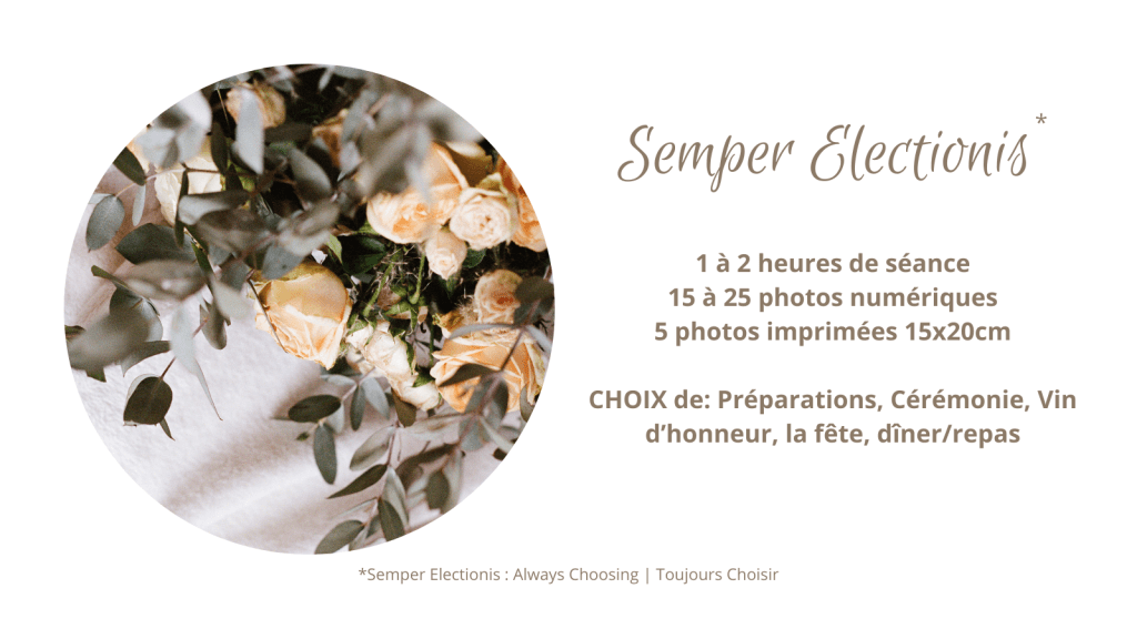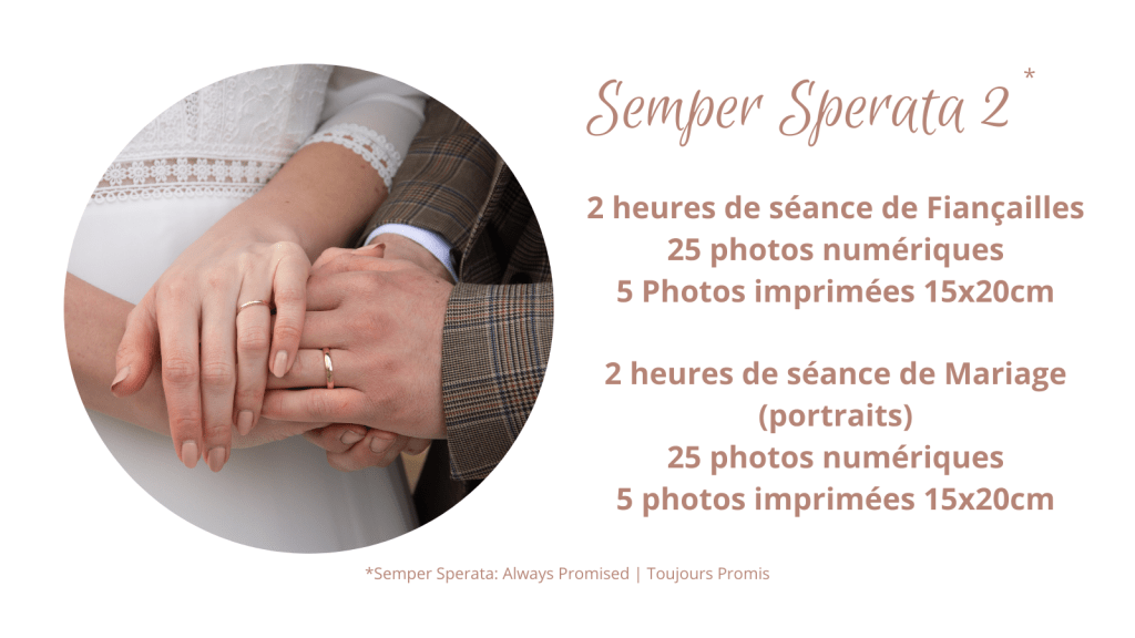 Veuillez retrouver ci-dessous les forfaits pour les séances photo / les reportages pour des mariages et les fiançailles. Si vous pensez qu’un forfait ne correspond pas à vos attentes, veuillez me contacter pour que nous discutons et voir ensemble.