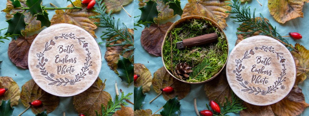 Boîte + clé USB de 16 GO en bois. Choix de gravure. Choix de couleurs aussi.